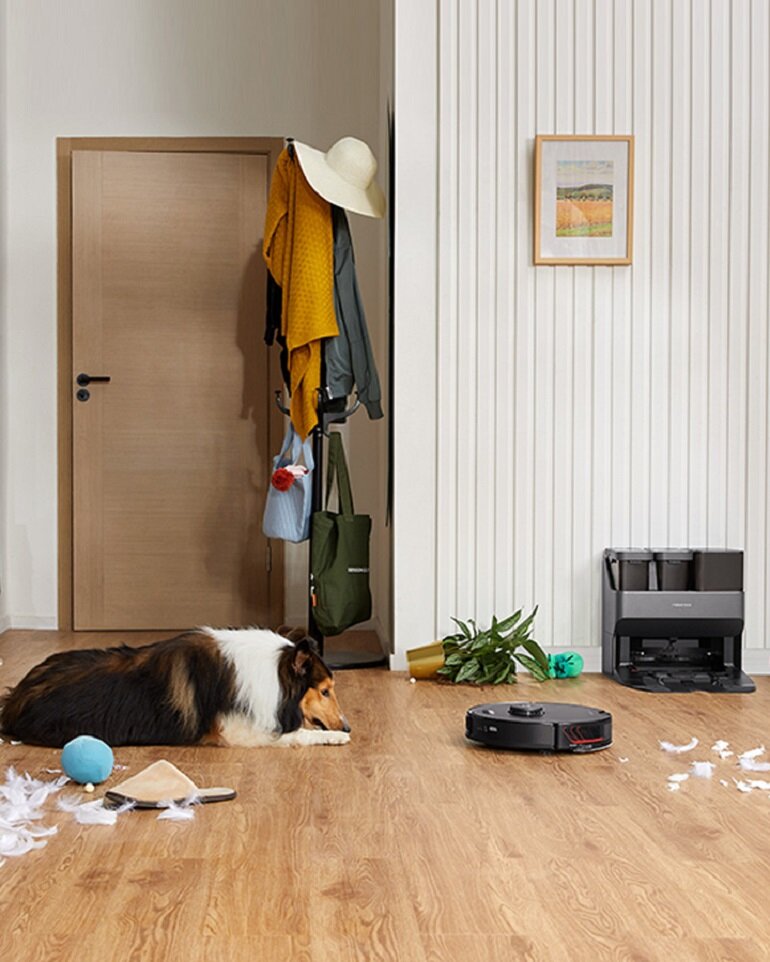 Robot hút bụi Roborock S7 MaxV có thể di chuyển xung quanh đồ nội thất, thùng rác, giày dép, tất, chó, tủ TV,....