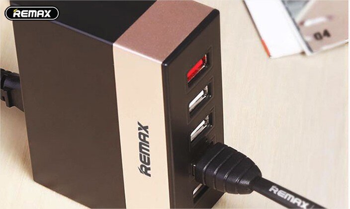 Được thiết kế với kiểu dáng hình chữ nhật, 1 chiếc củ sạc này có trọng lượng chỉ vào khoảng 161g và kích thước là 7.5x6x3cm, bạn có thể cầm nắm hay cất giữ trong túi nhanh chóng và tiện lợi. Vỏ củ sạc được làm từ chất liệu nhựa ABS chắc chắn, chống cháy nổ, trầy xước và va đập tốt hơn so với các củ sạc thông thường. Nếu để ý bạn sẽ thấy, vỏ sạc được phun sơn cách điện đơn giản nhưng tinh tế và hiệu quả.  Củ sạc đa năng, sạc 5 thiết bị cùng 1 lúc Nếu muốn sở hữu cho mình một củ sạc đa năng, sạc được 1 lúc nhiều thiết bị thì củ sạc 5 cổng USB Remax RU-U1 chính là chọn lựa bạn không thể bỏ qua.