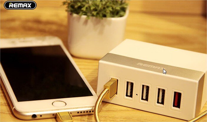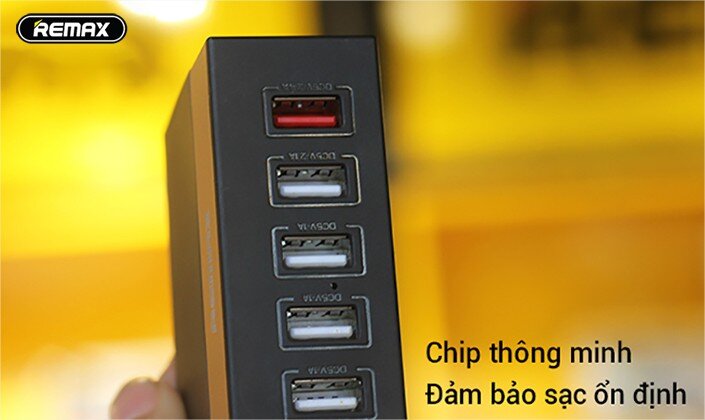 5 cổng USB sạc 5 thiết bị cùng 1 lúc Ngoài ra, trong 5 cổng của củ sạc 5 cổng Remax RU-U1 có 2 cổng hỗ trợ sạc nhanh tương thích với các dòng smartphone có chức năng sạc nhanh. Đây là một trong những tính năng cực hữu ích mà người dùng vốn vẫn luôn tìm kiếm ở những củ sạc iPhone hay các củ thông thường.