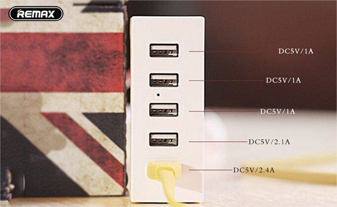 5 Cổng USB của RU - U1 được chia nguồn rõ ràng Không chỉ đa năng, củ sạc 5 cổng Remax RU-U1 còn sở hữu thiết kế thông minh tạo nên sự an toàn cho người sử dụng.