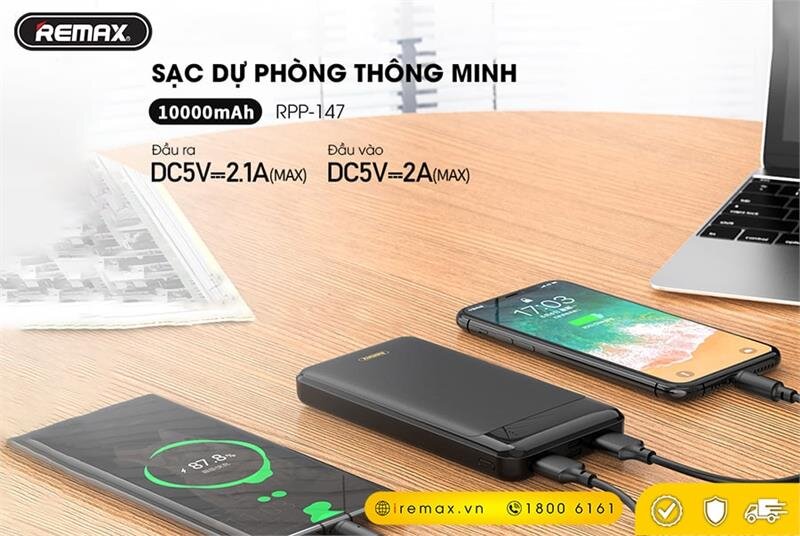 Siêu phẩm sạc dự phòng 10000mAh Remax RPP-147 với tính năng sạc kép, nguồn ra ổn định đảm bảo sạc an toàn chắc chắn sẽ chinh phục mọi tín đồ công nghệ.