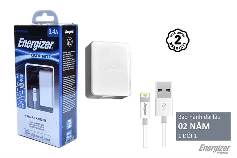 Sạc Energizer 3.4A - bảo hành tối ưu 2 năm - 1 ĐỔI 1