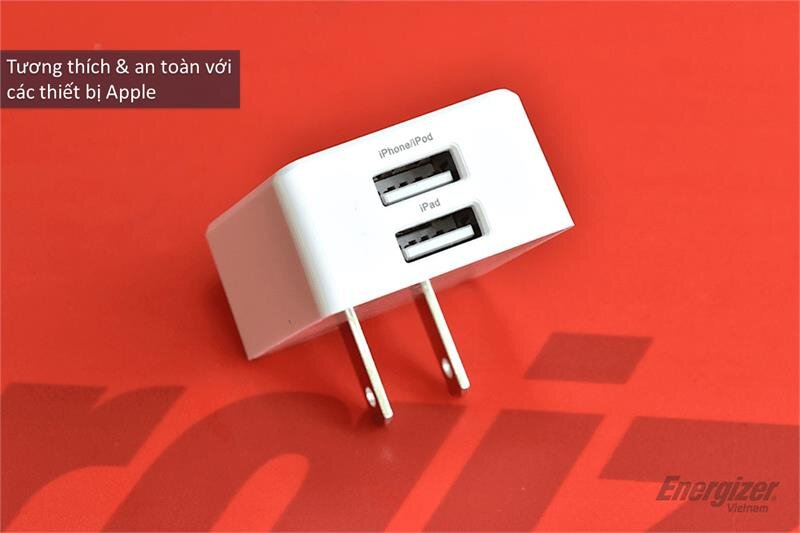 Sạc Energizer 3.4A - tương thích an toàn với các thiết bị iPhone/ iPad