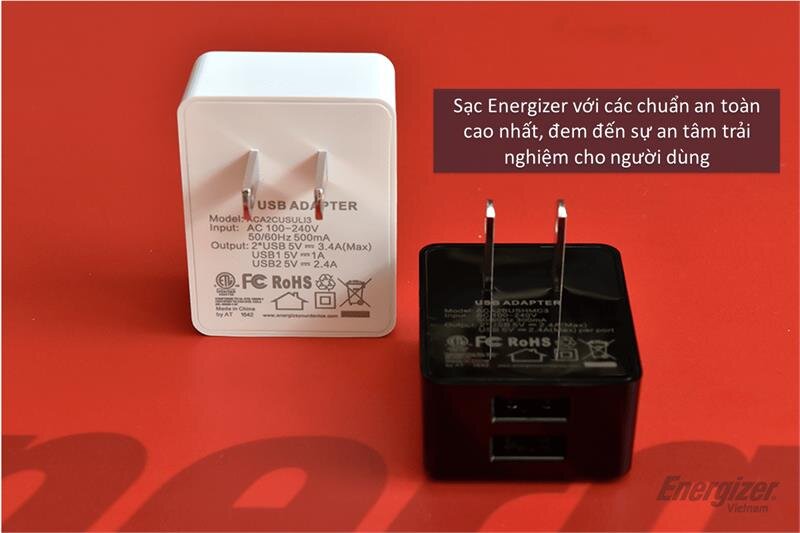 Sạc Energizer 3.4A 2 cổng USB - thương hiệu Mỹ, an toàn, chất lượng vượt trội