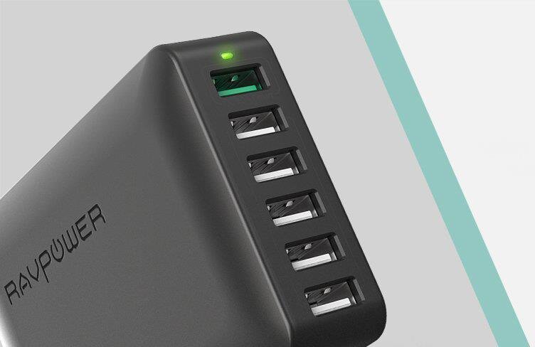 Giới thiệu: Củ sạc RAVPOWER PC029 6 cổng, công suất 60W, cổng sạc Quick Charge 3.0