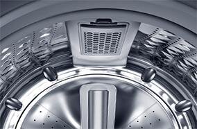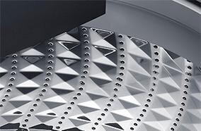 Hình dạng của lồng giặt Kim cương mang đến hiệu suất giặt sạch mạnh mẽ nhưng nhẹ nhàng chăm sóc sợi vải. Lồng giặt với những lỗ thoát nước mang hình dáng những viên kim cương di chuyển quần áo dọc theo lồng giặt được thiết kế độc đáo, bên cạnh đó các lỗ thoát nước nhỏ hơn giúp sợi vải không bị vướng vào để tránh làm hư hỏng.