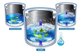 Công nghệ Wobble thiết lập một tiêu chuẩn mới trong việc chăm sóc và bảo vệ sợi vải bằng cách giảm ma sát gây nhăn nhúm làm hư hỏng sợi vải. Nó còn tăng cường hiệu suất đánh bật vết bẩn. Giờ đây bạn có thể trải nghiệm sức mạnh giặt sạch tăng cường và chăm sóc quần áo của bạn ở mức độ cao nhất, trong khi sử dụng lượng nước ít nhất so với máy giặt cửa trên không có công nghệ Wobble.