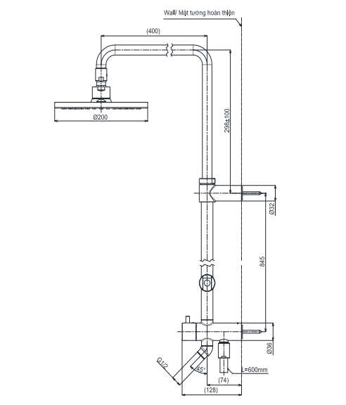 Bản vẽ kỹ thuật sen cây dòng G dáng tròn 200mm TOTO TBW07005A