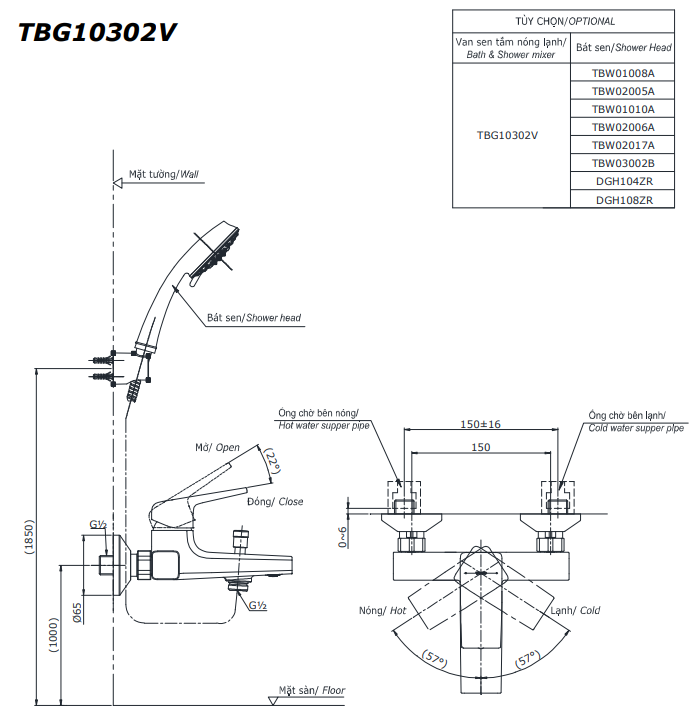 Bản vẽ kỹ thuật củ sen tắm nóng lạnh GB Series TOTO TBG10302VA