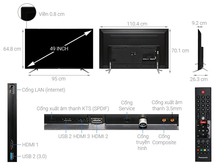 Bên cạnh khả năng kết nối được chuột, bàn phím thì smart tivi này còn được trang bị nhiều chuẩn kết nối thông dụng: HDMI, USB, Optical... để kết nối Panasonic 4K 49 inch TH-49FX550V với nhiều các thiết bị ngoài như đầu đĩa, dàn âm thanh, laptop...