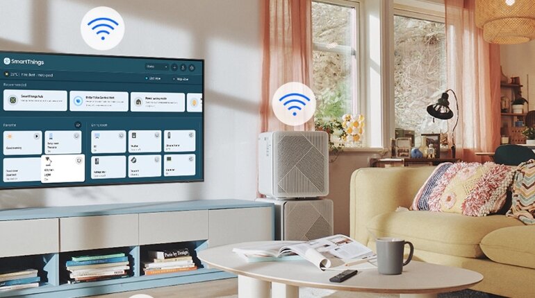 - Smart Things giúp kết nối tivi với các thiết bị gia dụng thông minh, từ đó người sử dụng có thể điều khiển các thiết bị này từ chính tivi một cách tiện lợi.