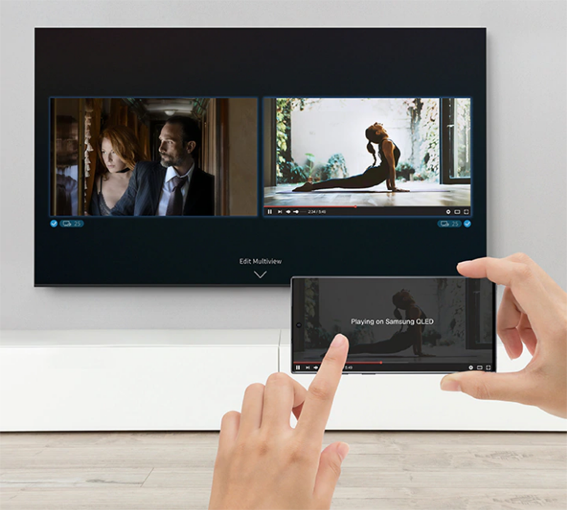 Tính Năng Multi View - Tiện lợi hơn với chế độ Multi View chia đôi màn hình TV, một bên sẽ hiển thị nội dung bạn đang xem và bên còn lại sẽ hiển thị màn hình điện thoại. Hạn chế sao nhãng, dễ dàng theo dõi mọi nội dung từ một màn hình duy nhất.
