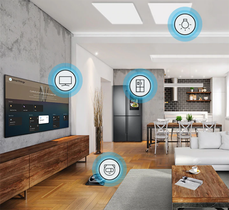 Bảng Điều Khiển - Kiến tạo không gian sống hiện đại với hệ sinh thái đỉnh cao từ Samsung. Tận hưởng tiện ích kết nối thông minh, trực quan và liền mạch giữa các thiết bị cảm ứng và IoT. Dễ dàng bật/tắt đèn, kiểm tra tủ lạnh hay khởi chạy robot hút bụi từ xa thông qua SmartThings được tích hợp ngay trên QLED TV.