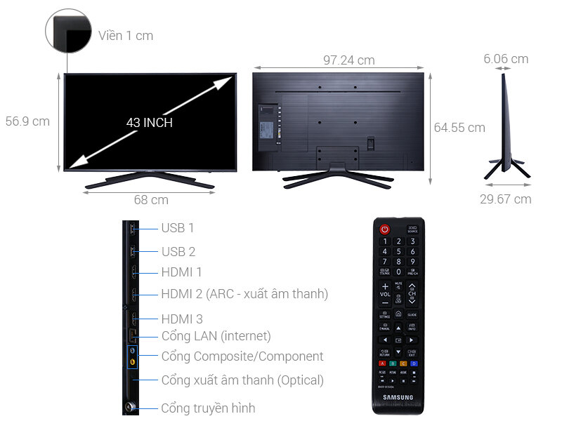 Smart Tivi Samsung 43 inch UA43N5500 Full HD với độ mỏng ấn tượng kết hợp màn hình phẳng làm nên sự sang trọng, hiện đại đến từng chi tiết.