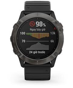 Mở rộng giới hạn mới và khám phá các thách thức mới - trong khi thêm vào bản đồ4, phát nhạc, hướng dẫn nhịp độ được điều chỉnh theo cấp độ và các tính năng khác vào bài tập của bạn - với lựa chọn fēnix 6X trong các đồng hồ GPS thể thao đa năng cao cấp. Màn hình lớn 3,5cm có sẵn với lựa chọn gờ bằng thép không gỉ hoặc phủ DLC. Phiên bản Sapphire có thêm mặt kính sapphire chống trầy và các vật liệu cao cấp - đã được kiểm nghiệm theo tiêu chuẩn quân đội 810G của Hoa Kỳ về khả năng chịu nhiệt, chống sốc và chống nước. Dây QuickFit bằng silicone, da, ni-lon hoặc titan giúp phù hợp với phong cách của mình mà không cần thêm phụ kiện. Tính năng PacePro tiên phong giúp bạn theo kịp hướng dẫn điều chỉnh cấp độ khi bạn tổ chức một khóa học.