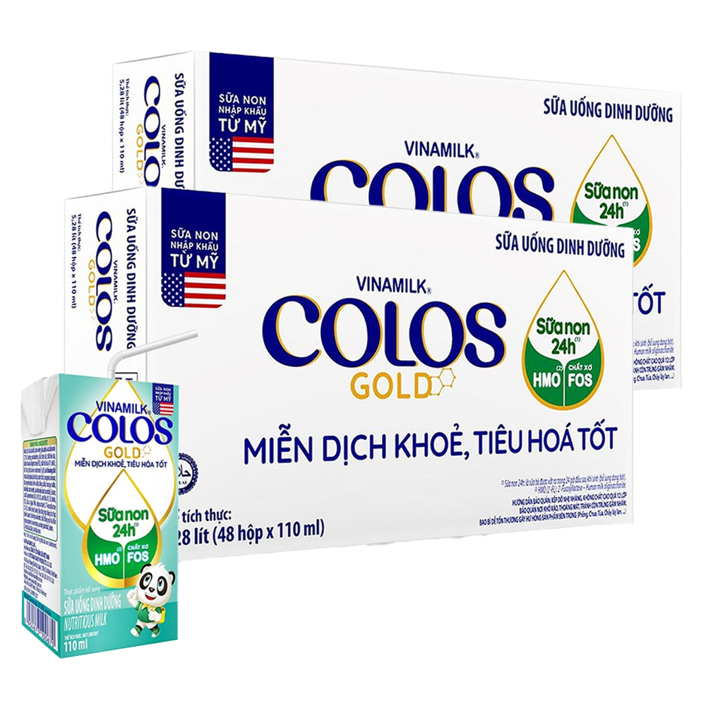 Sữa uống dinh dưỡng Vinamilk ColosGold 110ml là một sản phẩm thuộc thương hiệu Vinamilk. Sản phẩm phù hợp cho trẻ từ 1 tuổi trở lên. Với thành phần bổ sữa non, HMO (2'FL) cùng chất xơ hòa tan FOS; sữa ColosGokd giúp hỗ trợ tiêu hóa và tăng sức khỏe hệ miễn dịch cho trẻ. Ngoài ra, DHA kết hợp với Taurin, Cholin và trong sữa giúp phát triển não bộ, thị giác.