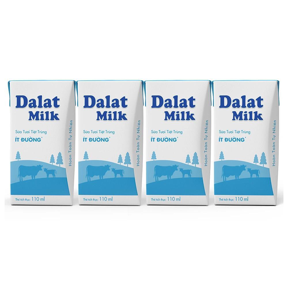 Tên sản phẩm: Sữa tươi tiệt trùng Dalat Milk ít đường 110ml (lốc 4 hộp)