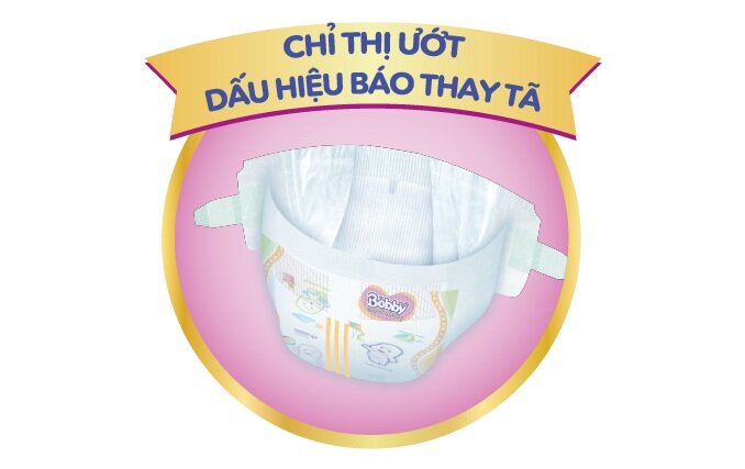- Dấu hiệu báo thời điểm thay tã: Khi tã đầy, dãi màu vàng ở đáy tã chuyển sang màu xanh đậm. Mẹ chỉ cần lưu ý quan sát để thay tã cho Bé, tránh tình trạng Bé quấy khóc, khó chịu do tã bẩn.