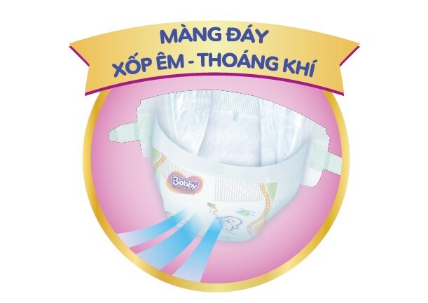 - Màng đáy xốp êm thoáng khí: Màng đáy thoát ẩm giúp lưu chuyển không khí bên trong, đẩy hơi nóng ẩm ra ngoài, giúp da hô hấp tự nhiên và làm giảm hiện tượng hăm tã.