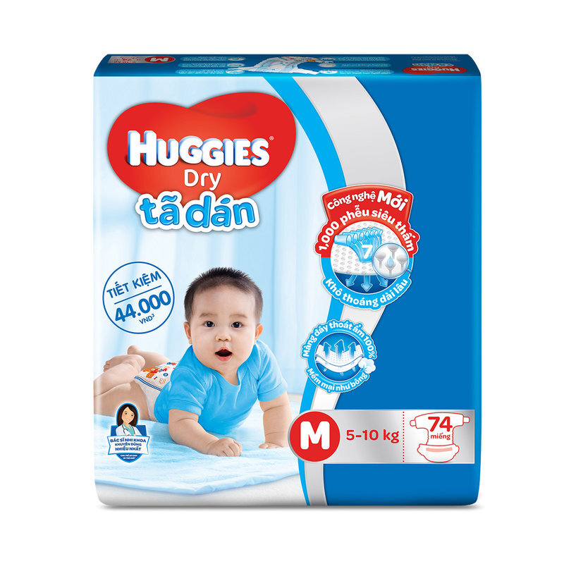 Tã Dán Huggies Dry Super Jumbo M74 Miếng (5-10Kg)
