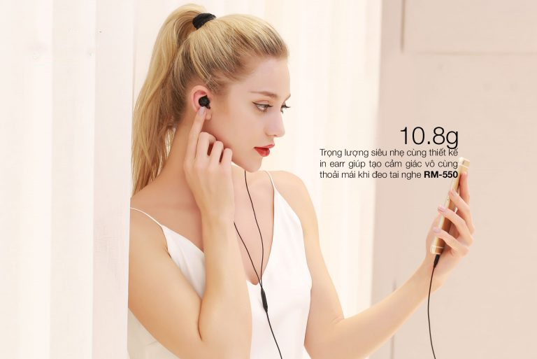 Nếu bạn thường xuyên bị đau tai khi sử dụng các sản phẩm tai nghe thì với RM-550 bạn không cần lo lắng đến vấn đề này nữa. Tai nghe RM-550 được thiết kế với kiểu sáng mới mẻ, phù hợp cấu trúc lỗ tai giúp người dùng có thể thoải mái vận động. Đồng thời, với thiết kế này, âm thanh cũng được truyền tải chân thực hơn, giảm tiếng ồn từ bên ngoài tác động vào.