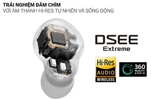 Với công nghệ DSEE Extreme được tích hợp nâng cấp nguồn âm thanh nén bằng cách sử dụng Edge-AI. Ngoài ra, còn cho phép người dùng thưởng thức âm thanh Hi-Res mà không cần dây nhờ LDAC giúp trải nghiệm tự nhiên, mượt mà.
