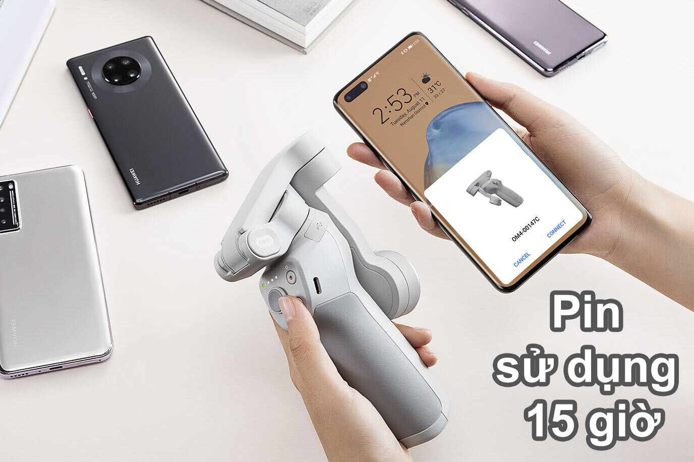 Pin trên chiếc gimbal này cũng có dung lượng khá lớn lên đến 2450mAh cho thời gian sử dụng kéo dài lên đến 15 giờ liên tục mới hết pin. Ngoài ra bạn cũng có thể sạc đầy chiếc gimbal này chỉ trong thời gian ngắn với khoảng 2.5 giờ là đã đầy pin sử dụng ngay trở lại qua cổng USB Type C.