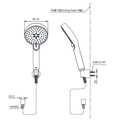 • Áp lực nước khuyến nghị: 0.1 - 0.5 MPa
