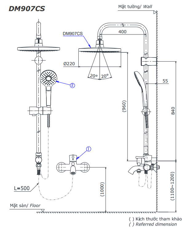 Bản vẽ kỹ thuật bộ sen cây nóng lạnh TOTO DM907CS/TBS02302V/TBW07009A