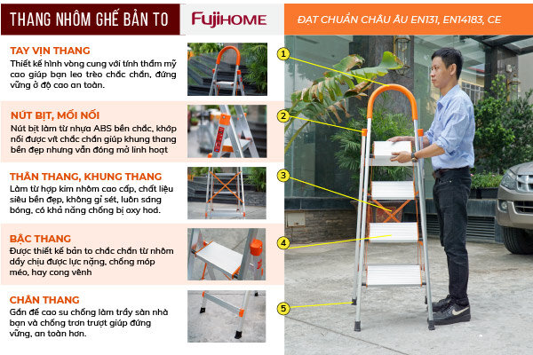 Giới thiệu: Thang nhôm ghế bản to 4 bậc FUJIHOME SL-304
