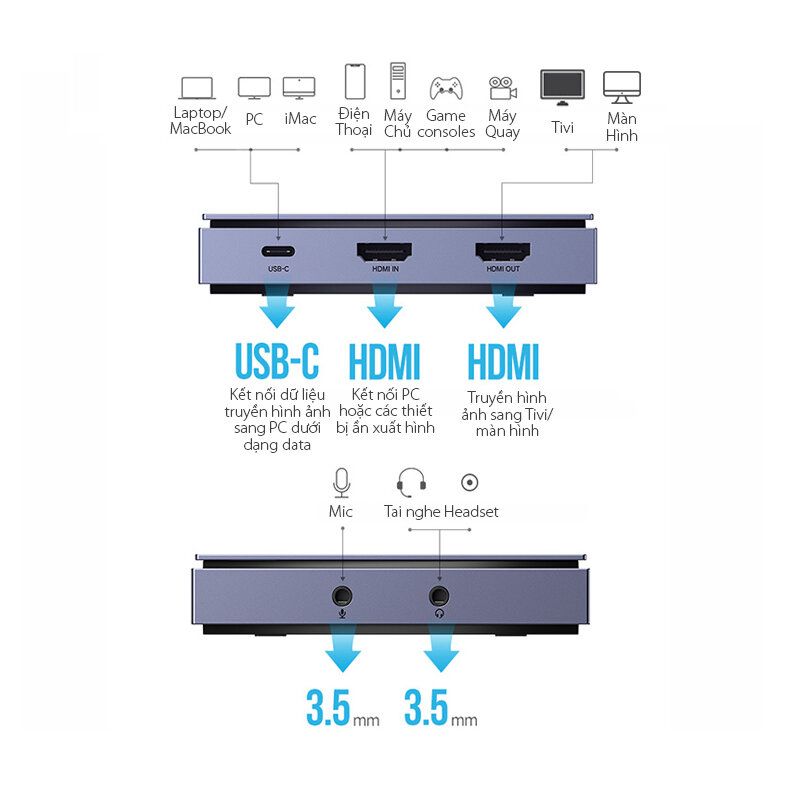 Tính năng: Ghi hình, Livestream trực tuyến HDMI to USB/ USB Type-C