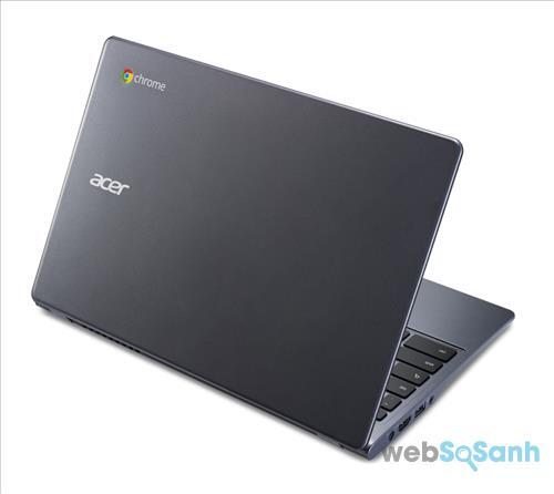 Toàn bộ phần vỏ của Acer C720 sử dụng chất liệu nhựa giúp giảm trọng lượng đáng kể của máy. Vỏ máy được có màu đen mờ chống bám vân tay tốt trong quá trình sử dụng. Năp lưng máy xuất hiện logo Google Chrome và Acer được đặt không hợp mắt cho lắm.