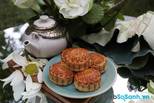 – 4 bánh to gồm 2 nhân sen trắng và 2 lòng đỏ trứng mặn.