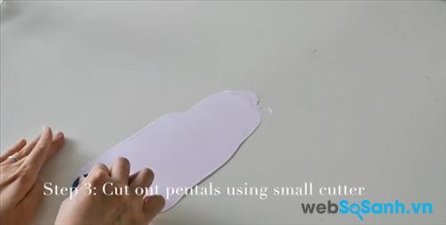 Đây là bước bạn sử dụng dụng cụ cắt hình cánh hoa để cắt ra tất cả các cánh hoa (bạn sẽ cần khoảng 15 cánh hoa). Sau đó đặt những cánh hoa để một khay trứng/ khay nhỏ để tạo thành các đường cong của cánh hoa.