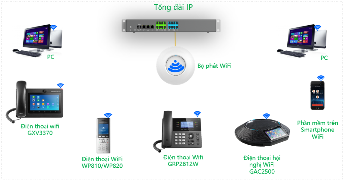 6/ Bạn không muốn đi dây, tổng đài IP không dây Grandstream cũng hỗ trợ luôn rồi bạn nhé