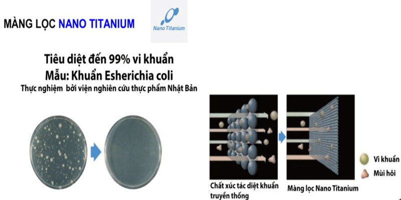 Màn lọc Nano Titanium là công nghệ đột phá sử dụng chất xúc tác TiO2 có tác dụng khử mùi và kháng khuẩn mạnh. Không cần bảo trì và năng lượng tiêu thụ.