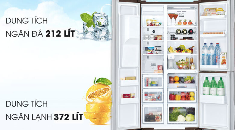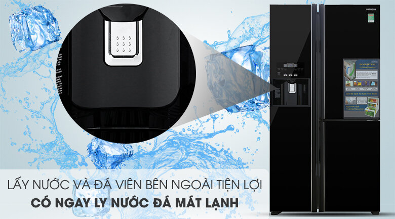 Dung tích lên đến 584 lít đáp ứng nhu cầu cho gia đình trên 5 người. Chiếc tủ lạnh Hitachi có dung tích 584 lít này sẽ là tùy chọn lý tưởng cho gia đình trên 5 người hoặc những nhà có nhu cầu bảo quản nhiều thực phẩm khi không được trang bị thời gian đi chợ thường xuyên.Trang bị hộc lấy nước và đá viên bên ngoài tiện lợi chỉ cần cho nước vào bình chứa, tủ lạnh sẽ tự động làm đá cho người dùng. Không cần hệ thống dẫn nước, người dùng có thể lắp đặt tủ lạnh gần như ở bất cứ vị trí nào bạn muốn, có ngay những ly nước mát lạnh cho người dùng khi cần.