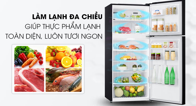 Nhờ hệ thống làm lạnh đa chiều mà luồng khí lạnh được phân bố đều ở tất cả các ngăn bên trong tủ, giúp làm lạnh thực phẩm một cách toàn diện và lâu hơn.