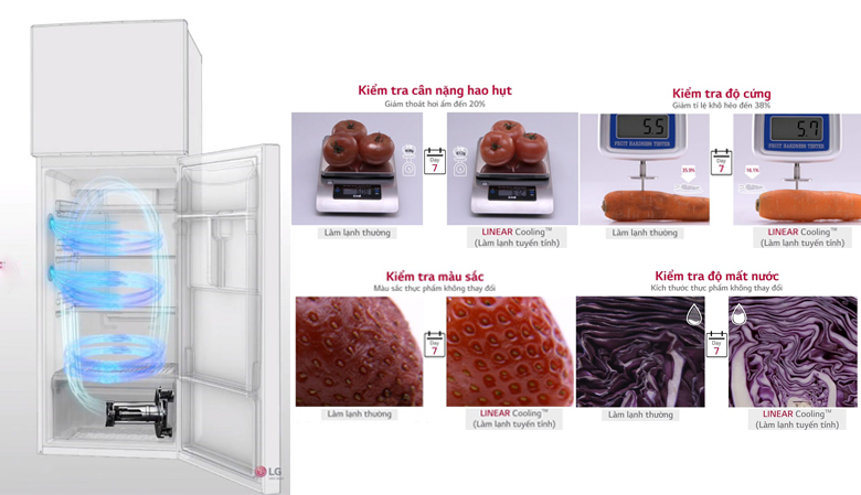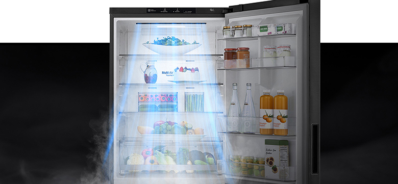 Ngăn cánh tủ là nơi tận dụng diện tích, tăng khả năng lưu trữ tối đa. Tuy nhiên, với các dòng tủ thông thường, hơi lạnh được đưa từ lưng tủ ra ngoài sẽ bị chắn bởi các vật dụng lưu trữ trước khi đến phần cửa, các thực phẩm lưu trữ phía ngoài sẽ không nhận được đầy đủ hơi lạnh. Công nghệ Door cooling với các lỗ thông hơi đặt ở trần phía trước của tủ lạnh đưa không khí lạnh đến thực phẩm được bảo quản bên ngoài, giúp thực phẩm tươi ngon, trọn vẹn dinh dưỡng trong thời gian dài nhờ nhiệt độ làm lạnh được tỏa ra đồng đều. Hơn thế nữa, công nghệ Door cooling tủ lạnh LG GR-D405PS cho khả năng làm mát nhanh chóng, bạn sẽ được tận hưởng ngay những chai nước mát lạnh mà không cần chờ đợi lâu.