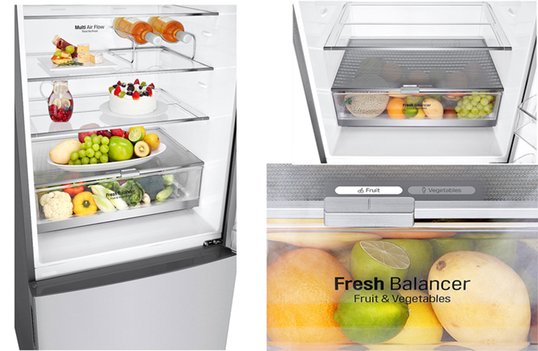 454 lít GR-D405PS thiết kế ngăn rau quả khép kín có thể điều chỉnh cài đặt độ ẩm 2 chế độ khác nhau (chế độ rau củ, chế độ hoa quả) tối ưu hóa độ ẩm. Độ ẩm được cân bằng hạn chế sự mất nước, làm giảm chất dinh dưỡng trong rau quả giúp kéo dài thời gian bảo quản của các loại trái cây và rau quả ngăn rau quả Fresh Balancer.