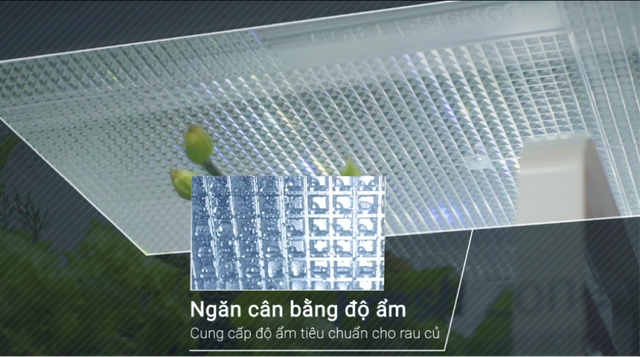 Ngăn cân bằng độ ẩm Moist Balance Crisper là một cải tiến sáng tạo giúp các gia đình bảo quản hiệu quả nguồn thực phẩm tối quan trọng này. Điểm đặc biệt nằm ở chiếc nắp của ngăn chứa với thiết kế lưới mắt cáo, giúp lưu giữ hơi nước bay lên từ thực phẩm được ngưng đọng tại các hốc mắt cáo mà không rơi ngược trở lại, hạn chế úng ngập và giúp duy trì độ ẩm của ngăn ở mức tối ưu. Nhờ thế rau quả giữ được độ tươi ngon tối đa.