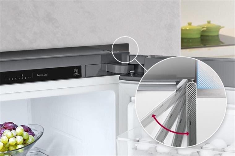 DoorCooling+™ Làm lạnh nhanh & đều hơn Thực phẩm luôn tươi ngon và đồ uống được giữ lạnh ở bất kỳ ngăn kệ nào với hiệu suất làm lạnh đồng đều và nhanh hơn. * Dựa trên kết quả thử nghiệm nội bộ của LG khi so sánh thời gian cần thiết để nhiệt độ của giỏ trên cùng giảm từ 24,8 ℃ xuống 8 ℃ giữa kiểu LGE’s Non-DoorCooling + ™ (GBB60NSZHE) và kiểu DoorCooling + ™ (GBP32SWLZN). * Kết quả có thể thay đổi trong cách sử dụng thực tế. * Hình ảnh của sản phẩm chỉ mang tính chất minh họa và có thể khác với sản phẩm thực tế. * DoorCooling + ™ phải dừng hoạt động khi cửa được mở.