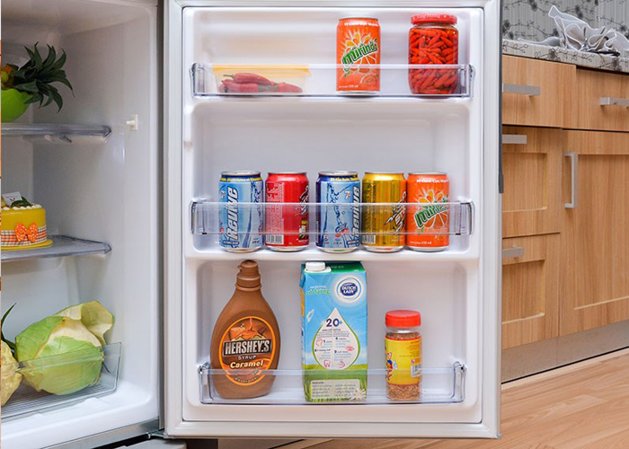 Ngăn mát dung tích lớn ấn tượng Trên cánh tủ, nhà sản xuất đã rất tâm lý khi trang bị thêm 3 ngăn chứa, trong đó có hai ngăn lớn có khả năng chứa đựng các chai nước giải khát cỡ lớn, các hộp thực phẩm có chiều cao và một ngăn nhỏ trên cùng cho phép để trứng, gia vị cùng các loại đồ hộp loại nhỏ.