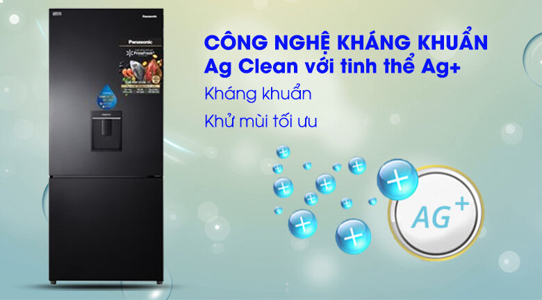 Chiếc tủ lạnh Panasonic ngăn đá dưới này sẽ giữ được thực phẩm trọn vẹn hương vị thơm ngon và độ tươi mới lâu hơn với khả năng ngăn chặn vi khuẩn, khử nhưng mùi hôi khó chịu trong tủ của công nghệ Ag Clean với các tinh thể bạc Ag+.