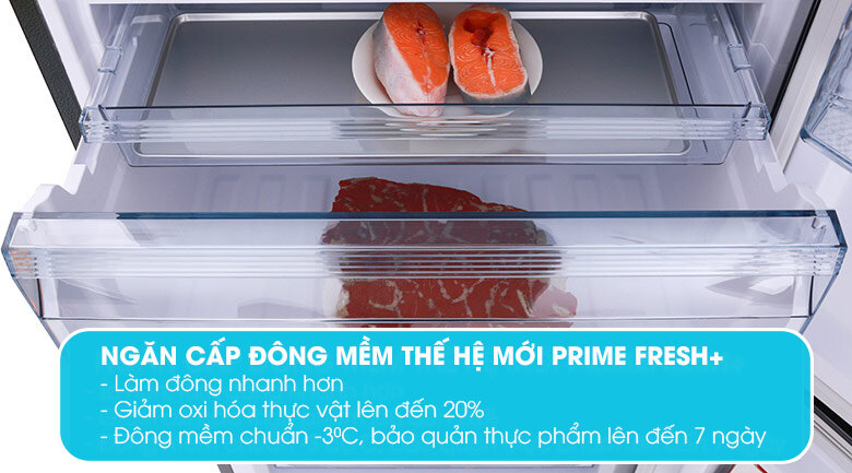 Cấp đông mềm chuẩn -3 độ, bảo quản thực phẩm tươi ngon đến 7 ngày với ngăn cấp đông mềm thế hệ mới Prime Fresh+