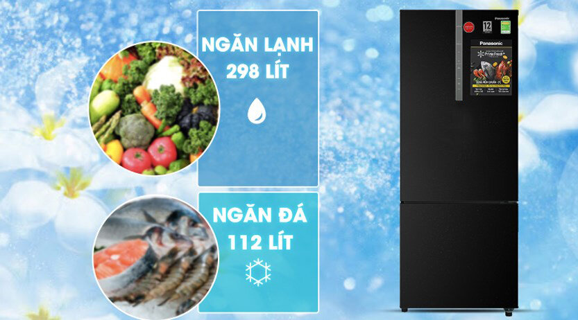 NR-BX460XKVN có dung tích sử dụng 410 lít trong đó ngăn lạnh 298 lít, ngăn đông 112 lít phù hợp nhu cầu trữ thực phẩm cho gia đình 4 đến 5 thành viên.