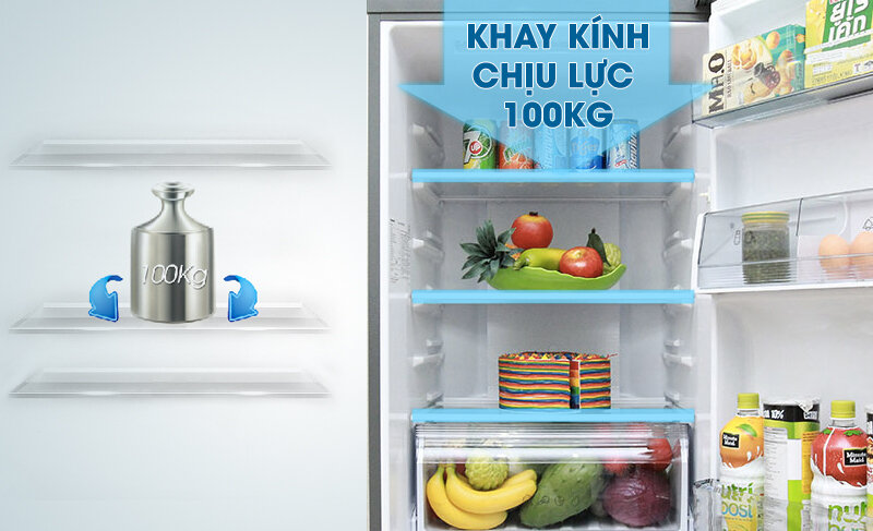 Tủ lạnh được trang bị các khay chứa và khay ngăn kệ có khả năng chịu lực tốt và vô cùng bền bỉ giúp bạn có thể chứa được một lượng lớn thực phẩm và yên tâm trong quá trình bảo quản.