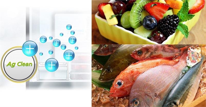 Tủ lạnh được trang bị hệ thống khử mùi, kháng khuẩn tinh thể bạc Ag Clean, có tính năng bất hoạt 99.9% vi khuẩn bên trong tủ, khử sạch mùi tanh khó chịu từ thịt cá cũng như rau củ, giúp tủ lạnh luôn trong tình trạng sạch sẽ và thức ăn luôn được giữ tươi ngon.