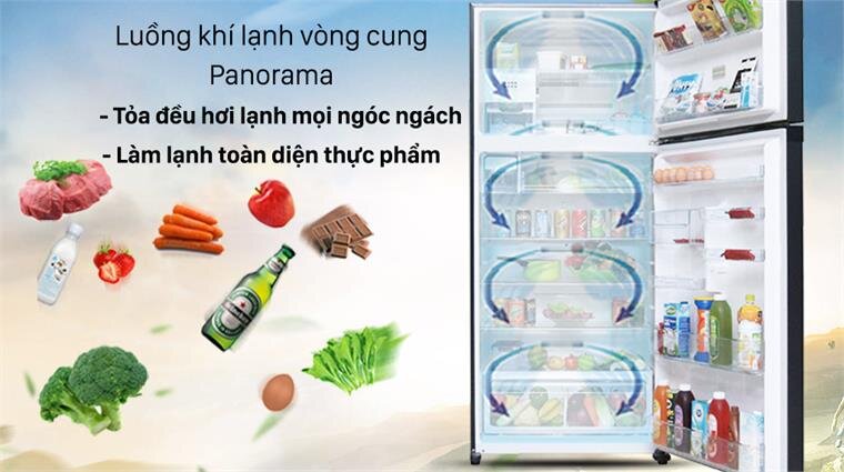 *Hình ảnh chỉ mang tính chất minh họa Tỏa đều hơi lạnh mọi ngóc ngách, làm lạnh toàn diện thực phẩm với công nghệ Panorama Công nghệ Panorama tỏa hơi lạnh theo hình vòng cung, khắp đều mỗi ngăn để bao quanh lấy thực phẩm, nhờ đó tránh được hiện trạng làm lạnh thực phẩm không đồng đều giữa các ngăn.