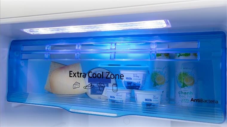 *Hình ảnh chỉ mang tính chất minh họa Làm lạnh đồ uống nhanh chóng với 2 độ C trong ngăn Extra Cool Zone Các loại đồ uống sẽ được làm lạnh nhanh chóng trong ngăn Extra Cool Zone với 2 độ C, cùng với nắp kháng khuẩn an toàn cho sức khỏe, giảm thiểu các yếu tố gây bệnh cho gia đình bạn.